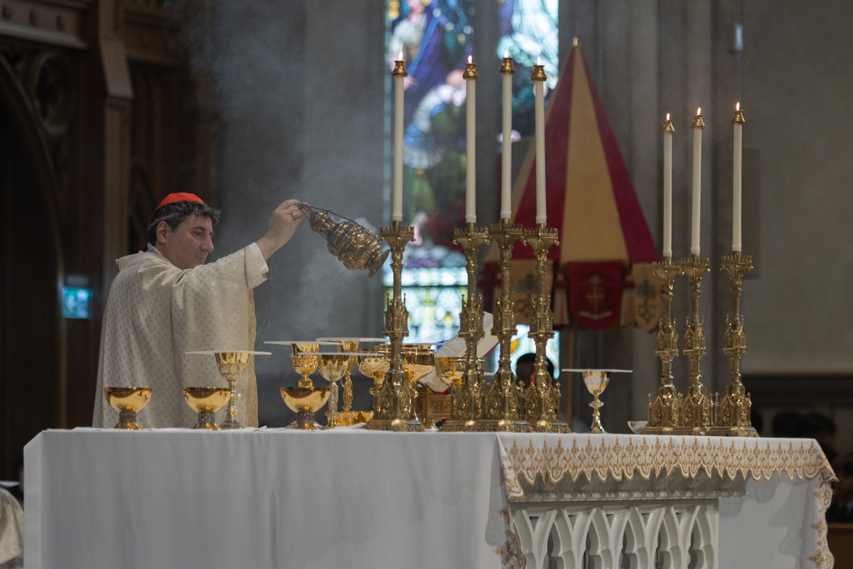 Each year, the Chrism Mass provides an opportunity for priests of the archdiocese to gather in solidarity with their local bishop and to renew their commitment to priestly service. Cardinal Leo also blessed the Holy Oils that will be used at sacramental celebrations over the next year at baptisms, confirmations, for catechumens and the anointing of the sick.